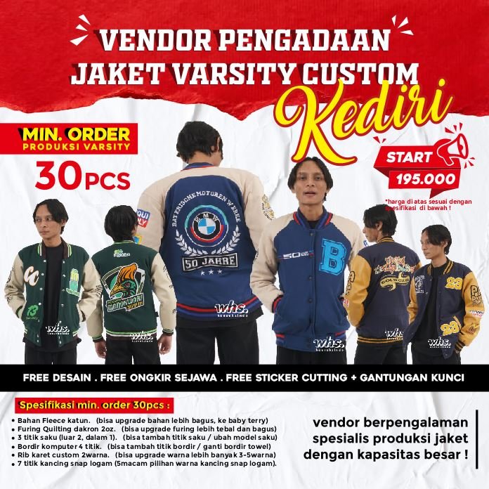 Di tengah meningkatnya permintaan akan jaket varsity custom, WHS KONVEKSINDO hadir sebagai vendor konveksi yang fokus pada produksi jaket varsity bordir full custom untuk wilayah Kediri dan seluruh Indonesia.