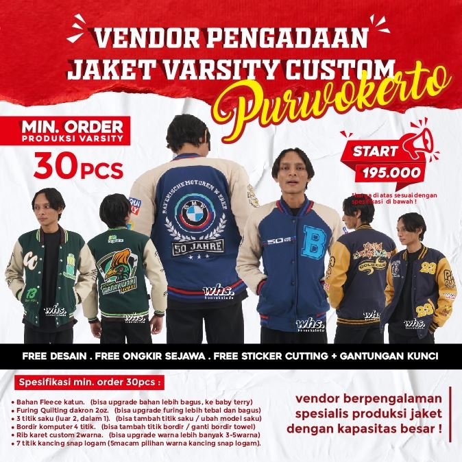 Berikut adalah alasan mengapa jaket varsity dari WHS KONVEKSINDO Mojokerto layak jadi pilihan: